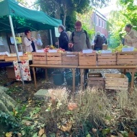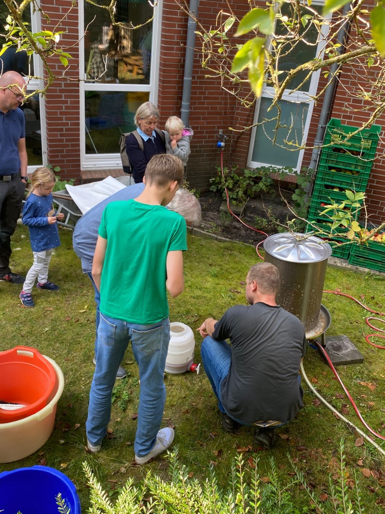Wer Lust auf etwas zum Mitnehmen hatte, konnte bei Matthias Bergmann unterschiedliche Apfelsorten kaufen, oder diese in bereits gepresster Form im praktischen 1l oder 3l Bag beim Verein Blühendes Emden e.V. erwerben.